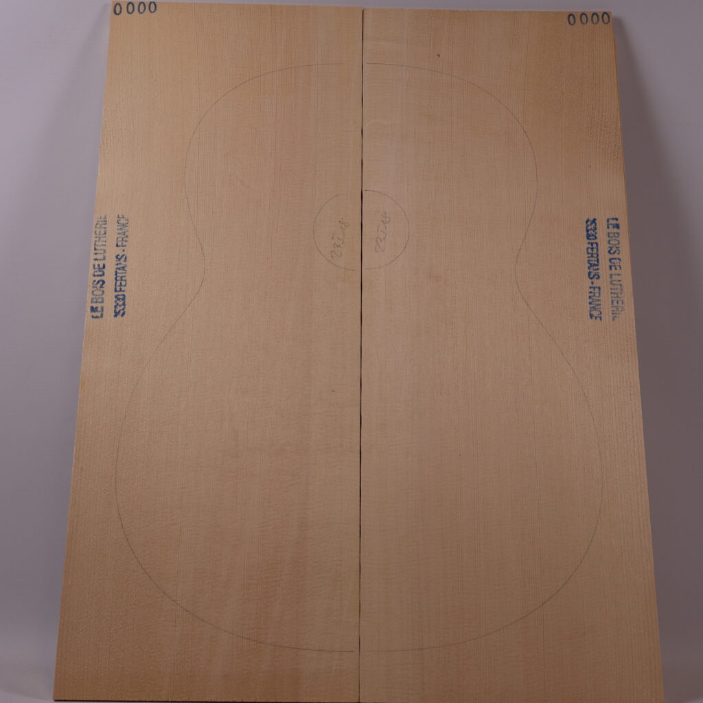 L’épicéa est l’essence reine lorsqu’il s’agit de fabriquer des tables d’instruments acoustiques. Récolté dans le Jura, il est pourvu d’un des meilleurs ratio densité / rigidité ce qui lui confère des qualités mécaniques et acoustiques exceptionnelles.
